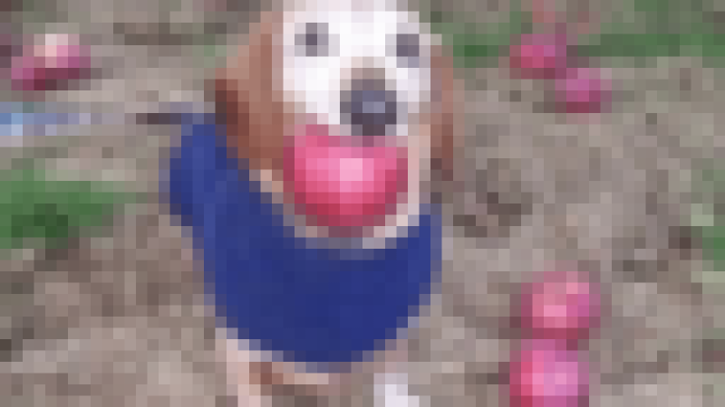dog with apple in mouth APPLE
